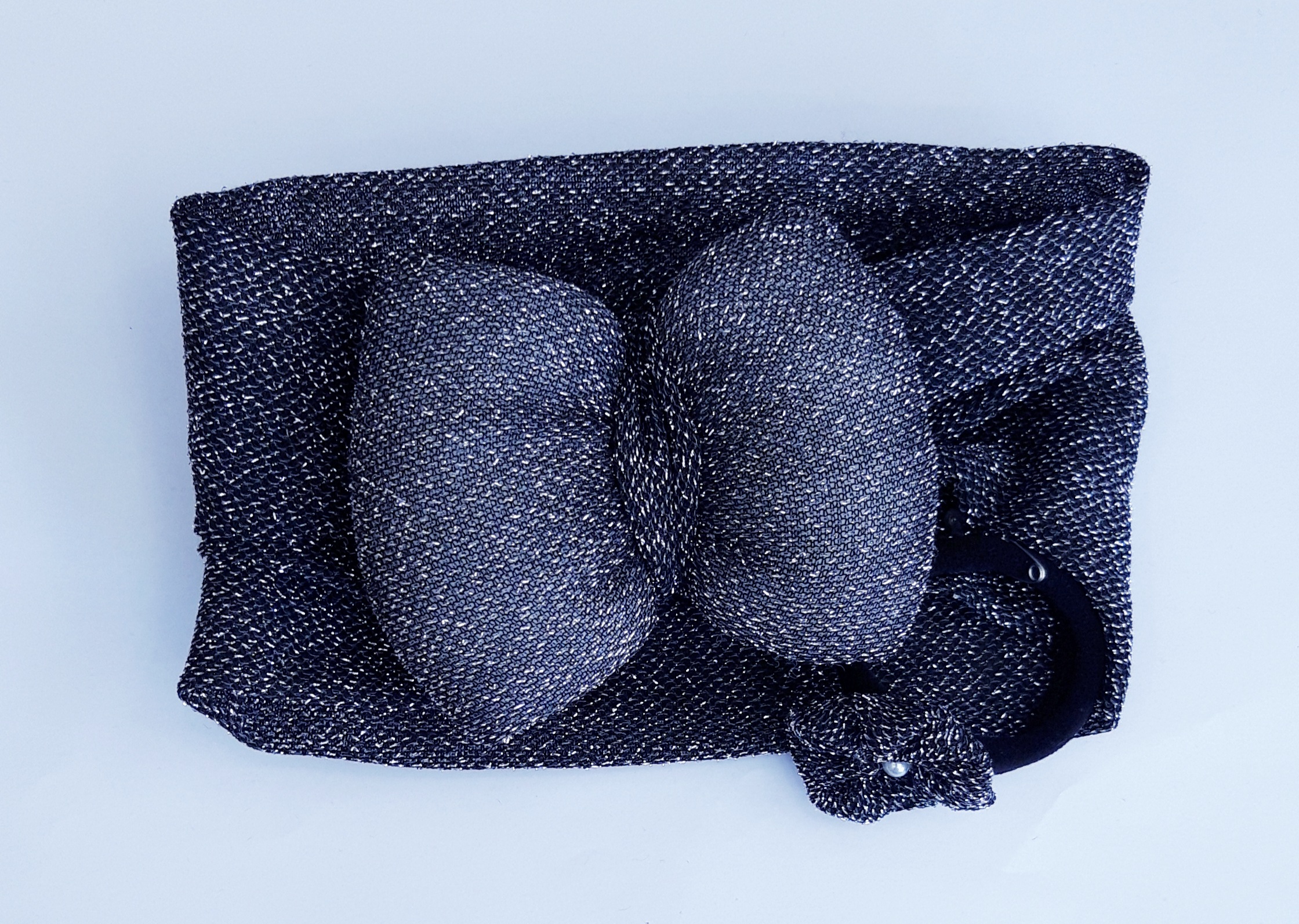 Κορδέλα μαλλιών χειροποίητη lurex με φιόγκο και λαστιχάκι με λουλούδι και πέρλα.