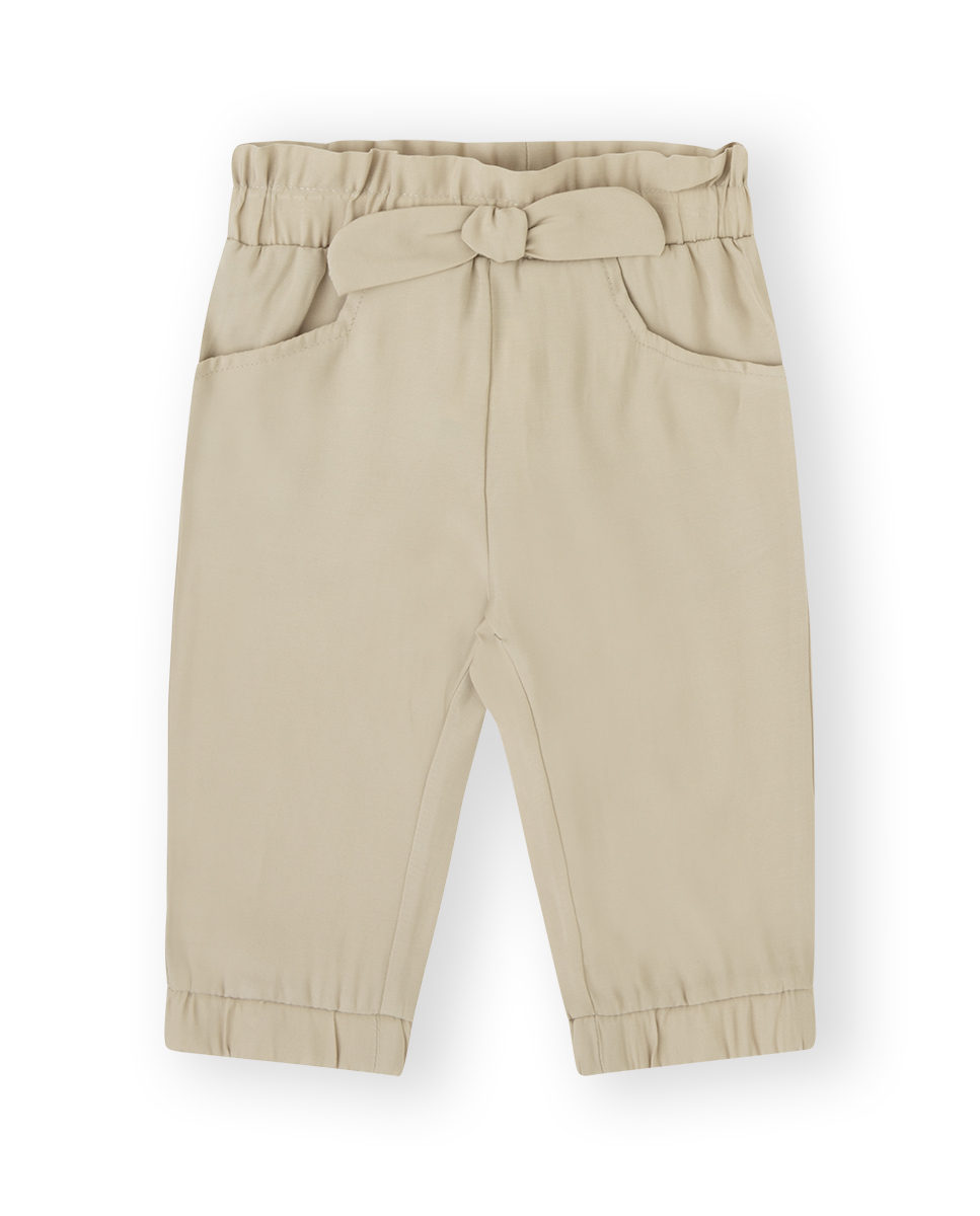 Παντελόνι ψηλόμεσο με λάστιχο στη μέση,διακοσμητικό φιόγκο και τσέπες.