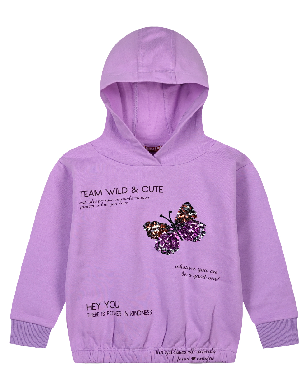 Μπλούζα φούτερ με κουκούλα, τύπωμα και παγιέτες πεταλούδα για κορίτσι