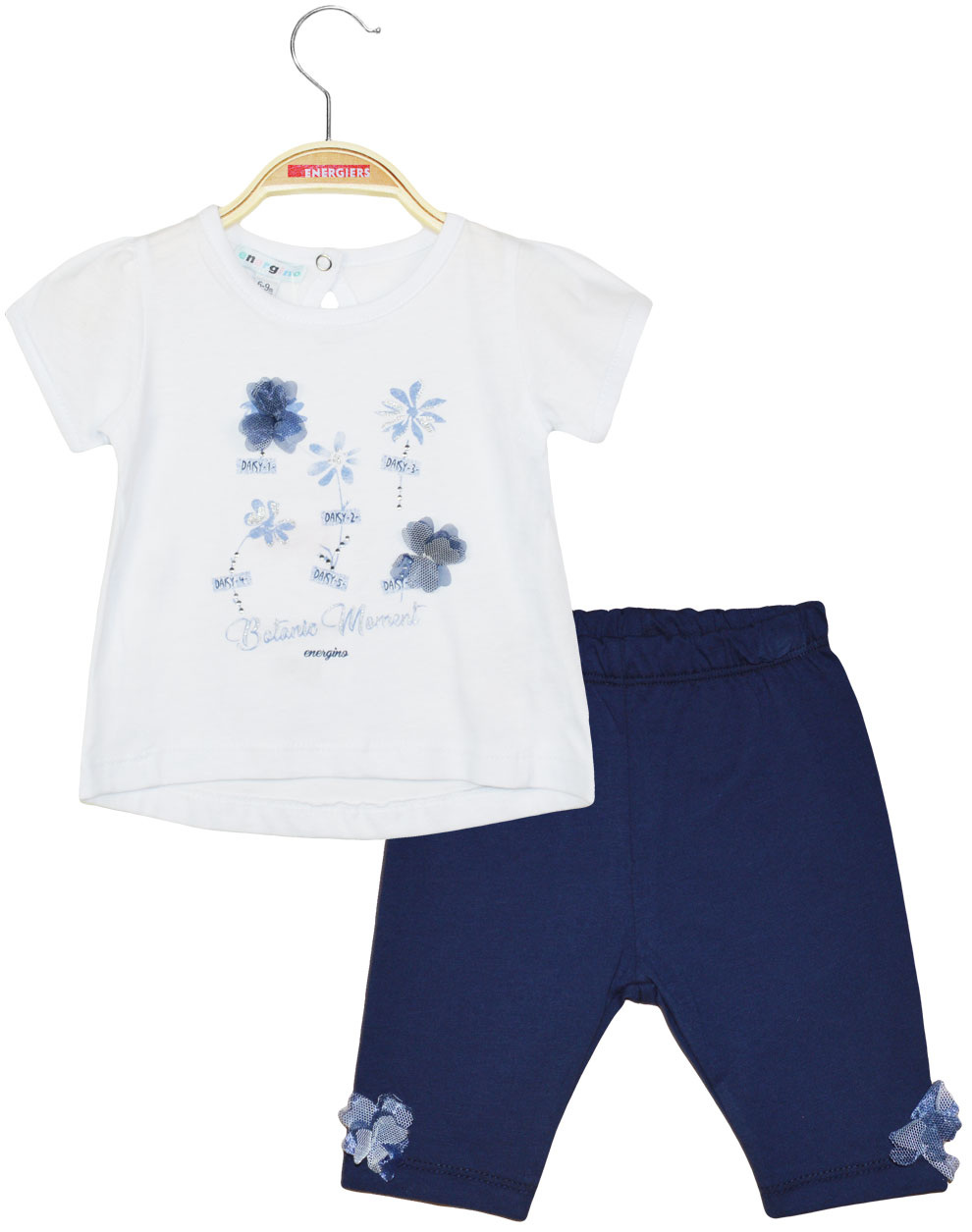 Εnergiers Σετ Μπλούζα με διακοσμητικά λουλούδια και κολάν κάπρι ποσότητα