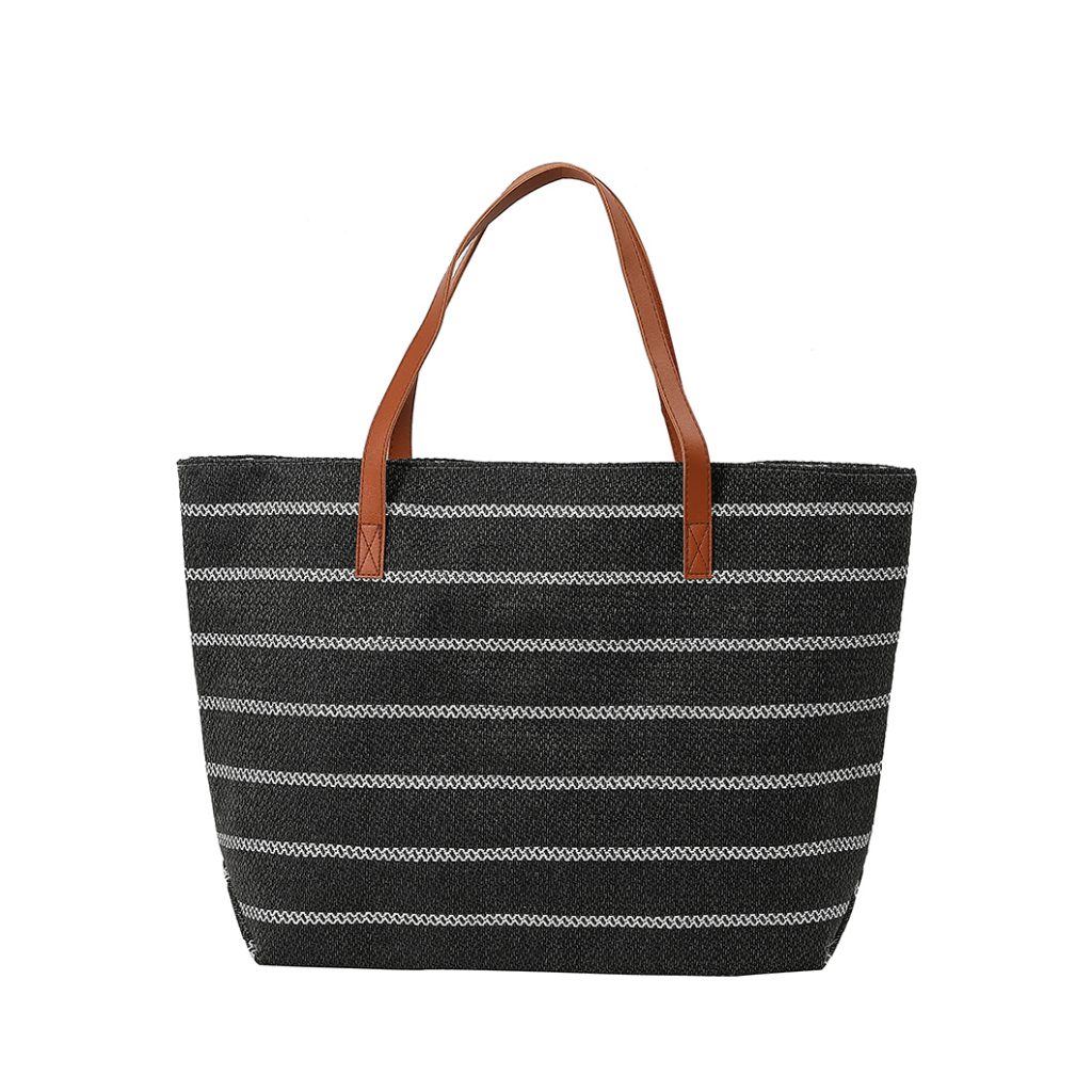 Τσάντα θαλάσσης ψάθινη με λουράκια δερματίνης.