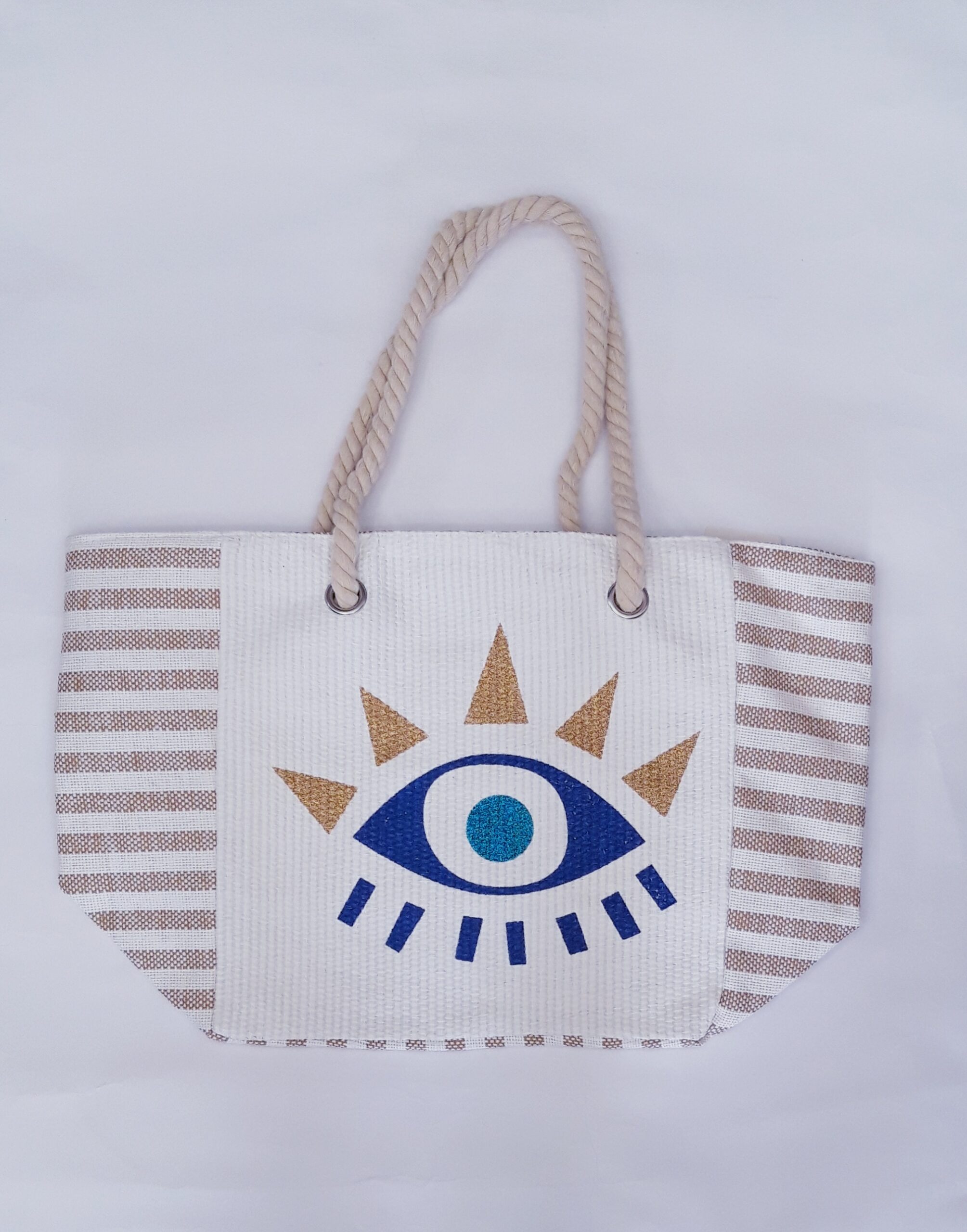 Τσάντα θαλάσσης με σχέδιο ριγέ και μάτι.