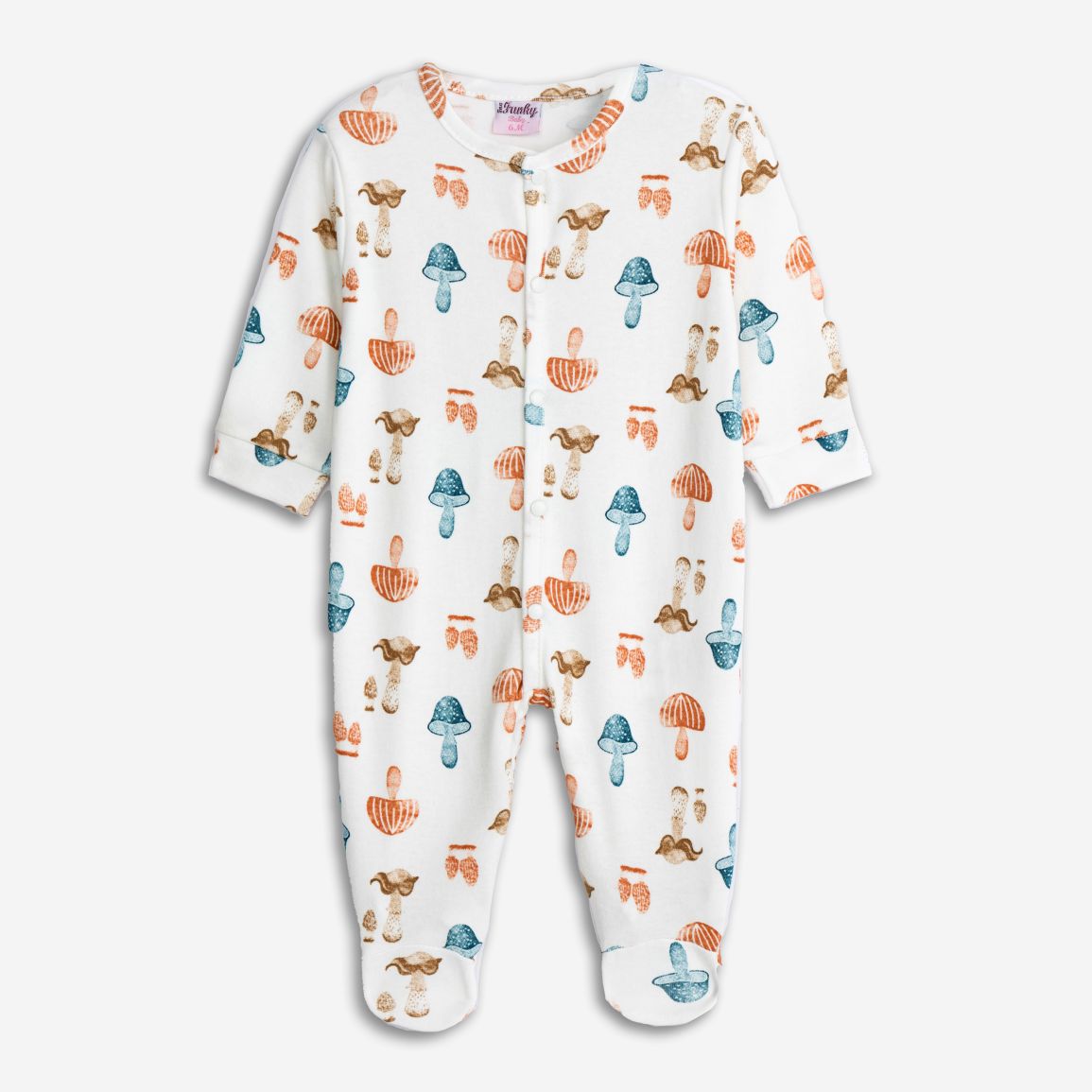 Βρεφικό Φορμάκι βαμβακερό με σχέδιο μανιτάρια και κουμπάκια στο μπροστινό μέρος