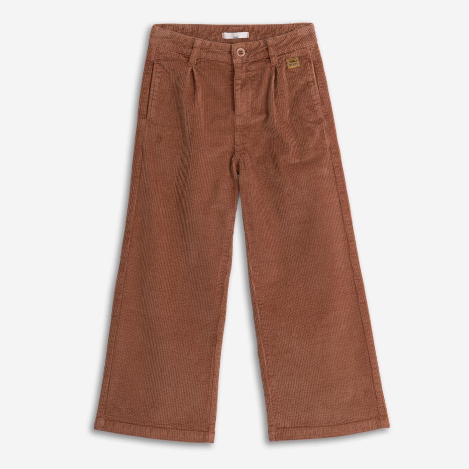 Παντελόνι κοτλέ φαρδιά γραμμή για κορίτσι σε καφέ χρώμα. Αποτελεί ένα από τα πιο βασικά ρούχα της παιδικής ντουλάπας και μπορεί να συνδυαστεί με μπλούζα μακό, πλεκτή, πουκάμισο κ.α.