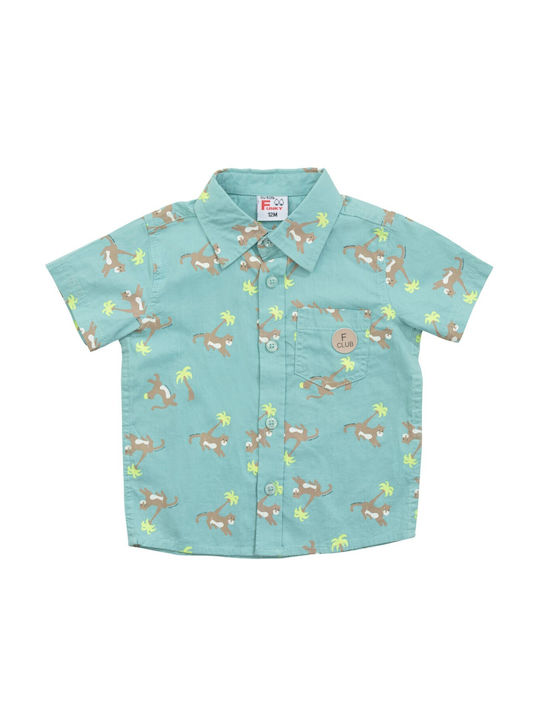 - Κοντομάνικο πουκάμισο βεραμάν χρώματος με “all-over” στάμπα.