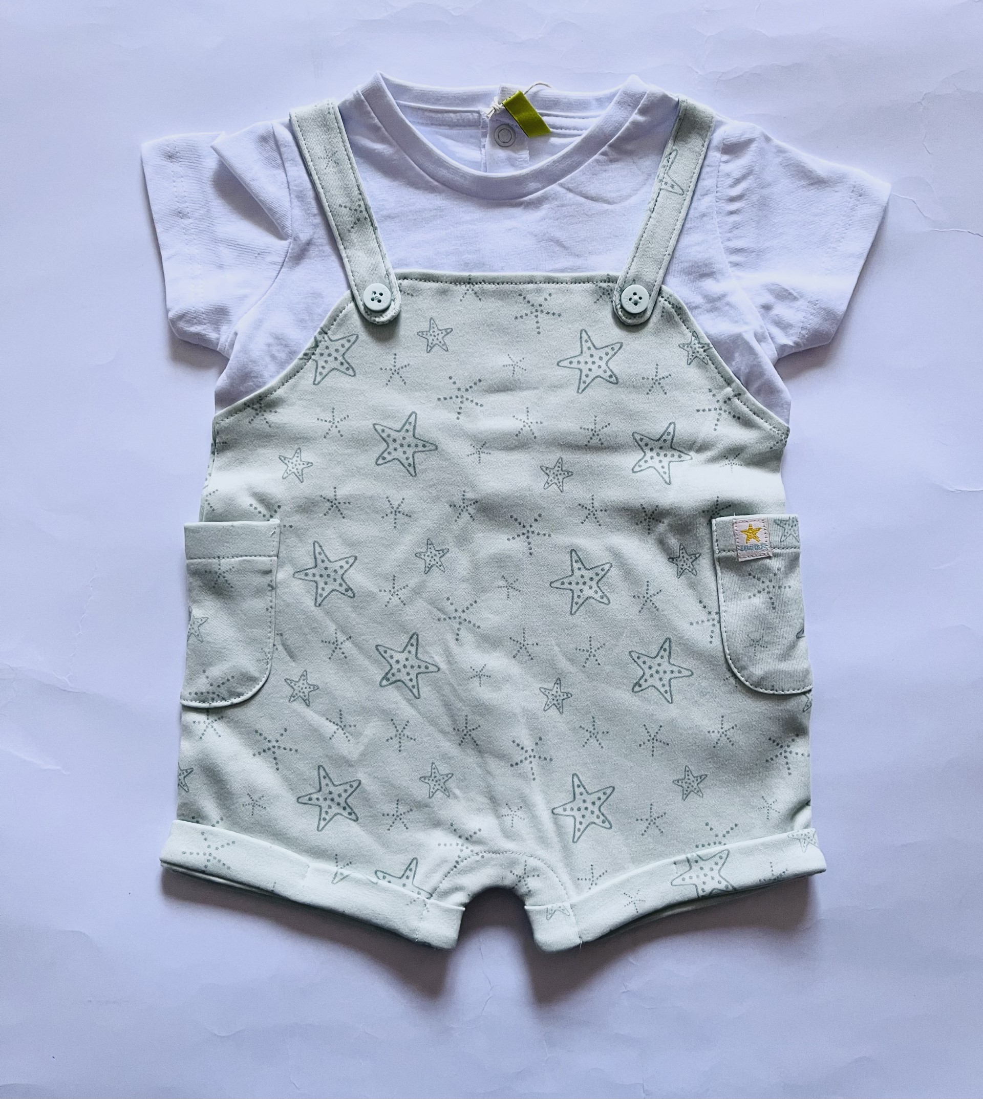 Βρεφική σαλοπέτα με ενσωματωμένο μπλουζάκι και σχέδιο αστερίες