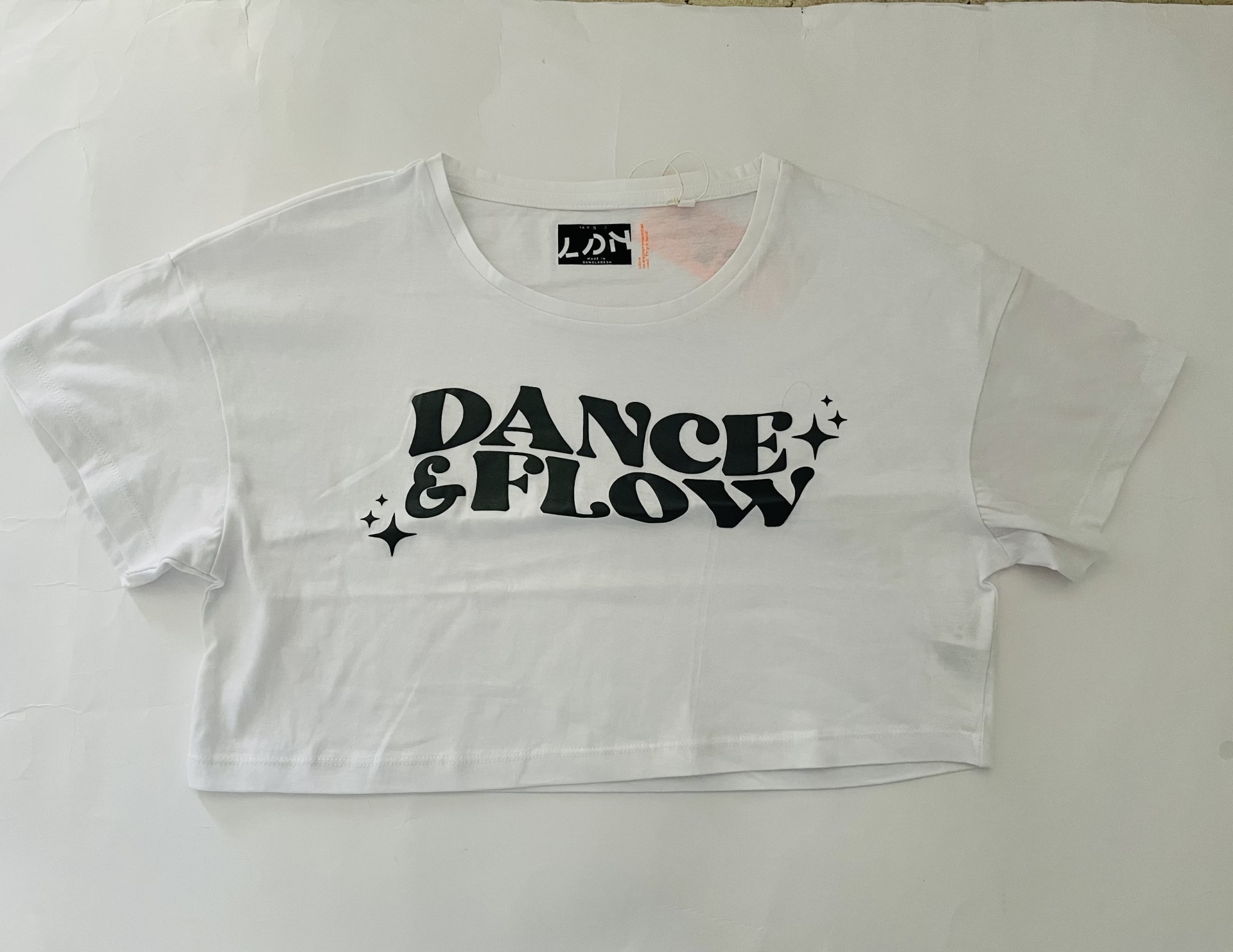 Μπλούζα κοντομάνικη crop top με τύπωμα Dance Flow