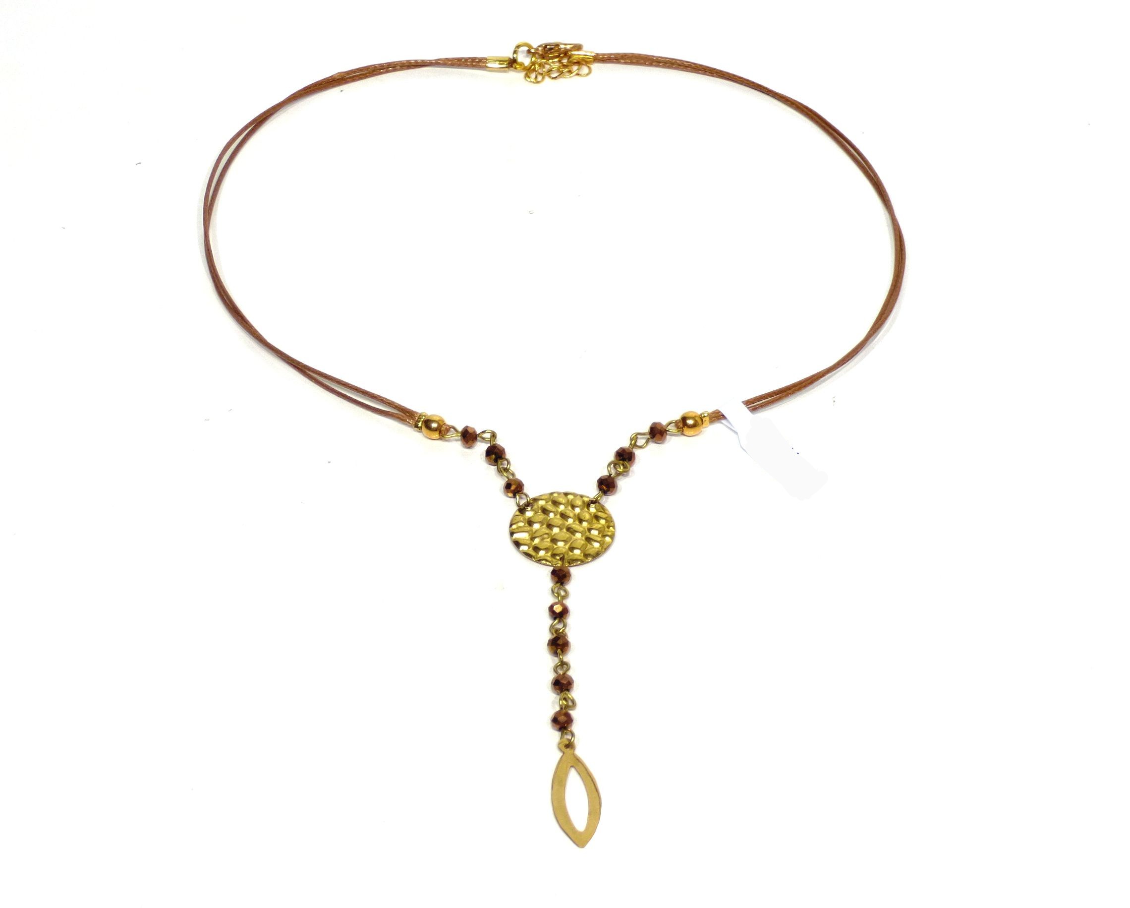 Κολιέ κοντό με συνθετικό κορδόνι και μεταλλικά στοιχεία.