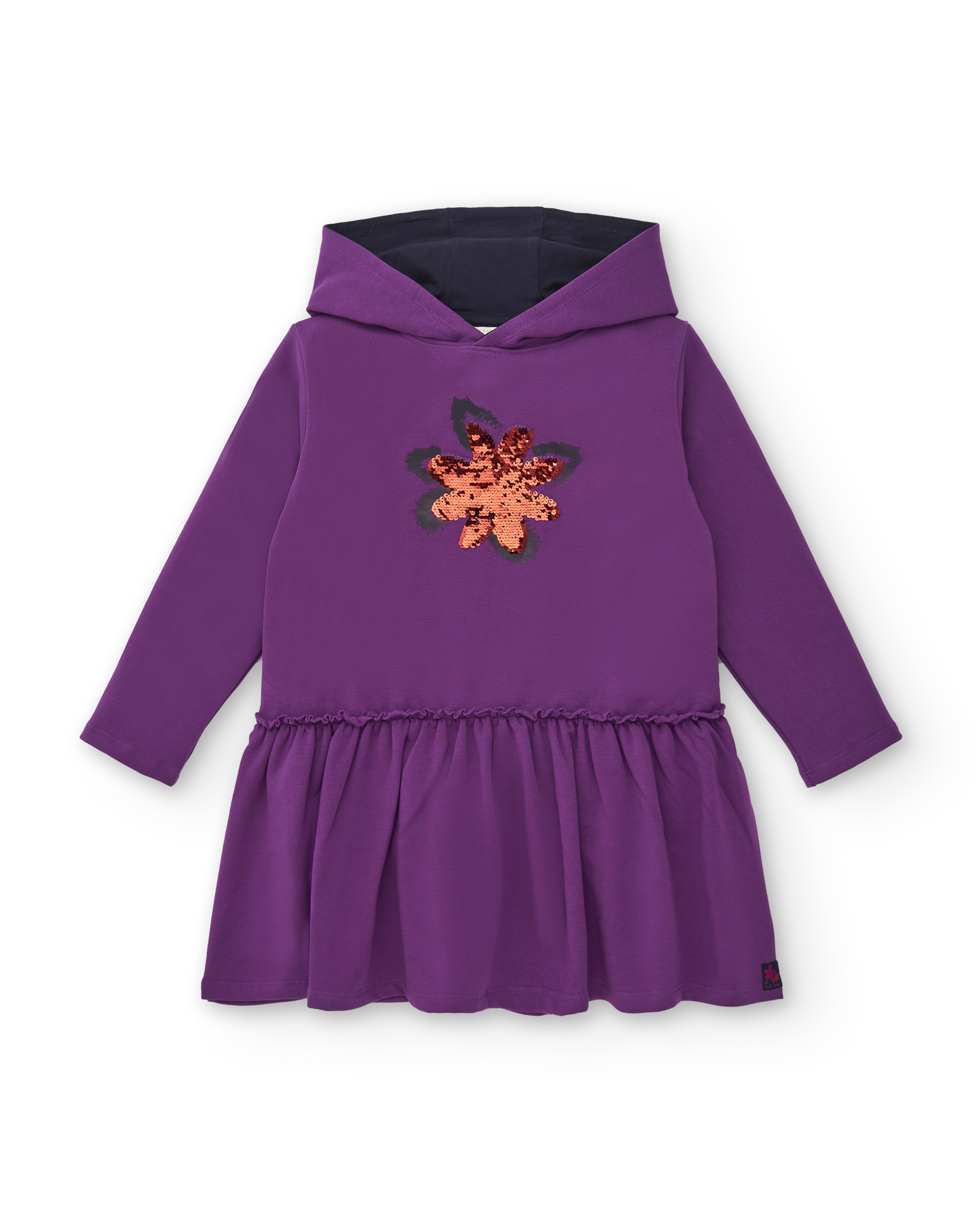 Φόρεμα βαμβακερό με κουκούλα και σχέδιο λουλούδι με παγιέτα